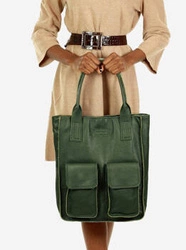 Skórzana torebka damska shopper bag z kieszeniami zielony - Marco Mazzini s131c