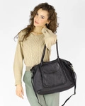 Skórzana torebka damska duży shopper vintage czarny - MARCO MAZZINI v7c