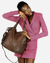 Torebka damska skórzana włoska worek ciemnobrązowy - Barberini's 994-11