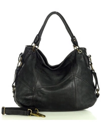 Torebka damska skórzana włoska worek czarna - Barberini's 994-1
