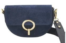 Skórzana listonoszka wizytowa na ramię zamszowa granatowa - Barberini's 882-4