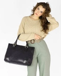 Skórzana torba damska na ramię shopper bag XL czarny - MARCO MAZZINI v232a