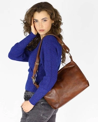 Klasyczna skórzana torebka damska na ramię brązowa - MARCO MAZZINI 416b