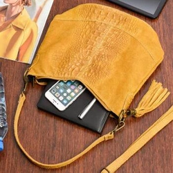 Skórzana torebka damska zamszowa listonoszka croco musztardowa - Beltimore W13