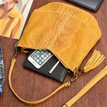 Skórzana mała listonoszka damska z frędzlem camelowa - Vera Pelle C74