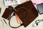 Skórzana torebka damska shopperka zamszowa ciemnobrązowa A4 Vera Pelle L82