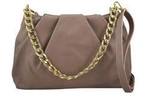 Skórzana torebka na ramię marszczona z łańcuszkiem pudrowo różowa - Barberini's 948-18