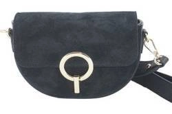 Skórzana listonoszka wizytowa na ramię zamszowa czarna - Barberini's 882-1