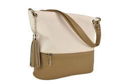 Skórzana torebka damska na ramię beżowo-kremowa - Barberini's 163-44
