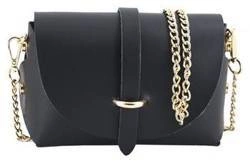 Skórzana torebka damska wizytowa na łańcuszku czarna - Barberini's 537-1