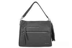 Skórzana torebka damska na ramię z frędzlem ciemnoszara - Barberini's 972-28