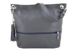 Skórzana torebka damska na ramię shopperka szara - Barberini's 163-3