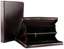 Skórzany biwuar z kalkulatorem aktówka ciemnobrązowa czekolada A4 Tizano BW04
