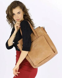 Skórzana torebka damska shopper bag z kieszeniami camel - Marco Mazzini s131p