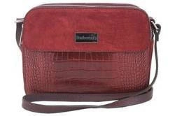 Skórzana listonoszka damska na ramię czerwona crossbody croco - Barberini's 885/1-5