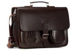Skórzana torba męska na ramię laptop 15,6" ciemnobrązowa - Brodrene 9923-DARKBR