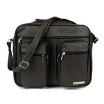 Skórzana torba męska na ramię laptop 15,6" ciemnobrązowa - Brodrene 9923-DARKBR