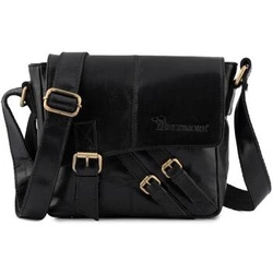 Skórzana listonoszka męska saszetka z klapką na ramię czarna - Albatros BB172
