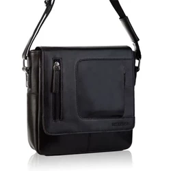 Skórzana męska saszetka na ramię czarna - Brødrene G-02-BL