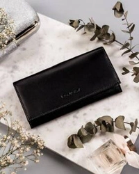 Skórzany portfel damski czarny z klapą - Rovicky R-RD-37-GCL