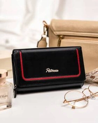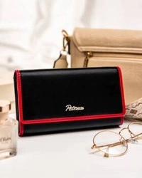 Skórzany portfel damski na zatrzask i suwak czarny - Peterson KA-24