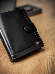 Elegancki skórzany portfel męski z zapięciem czarny - Rovicky PC-106L-BAR
