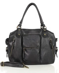 Skórzana torebka damska miejska czarna vintage - MARCO MAZZINI v154d