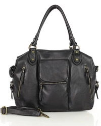 Skórzana torebka damska miejski shopper bag czarny - MARCO MAZZINI v102d