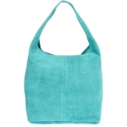 Skórzana listonoszka damska na ramię zamszowa niebieska podkówka B66