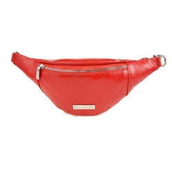 Skórzana saszetka damska pikowana nerka czerwona Beltimore F22