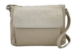 Skórzana torebka damska na ramię z zamszową klapką jasnobeżowa - Barberini's 962-10