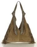 Torebka damska beżowa zamszowa z frędzlami worek skórzany MARCO MAZZINI s290b