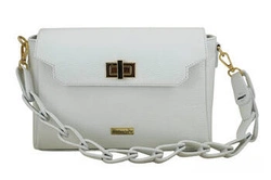 Saszetka damska nerka biała ze złotym łańcuszkiem Q23