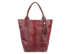 Skórzana shopperka damska zamszowa croco bordowa - Vera Pelle L94