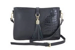 Skórzana listonoszka damska na ramię z frędzlem croco czarna - Barberini's 956-1