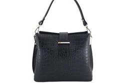 Skórzana listonoszka damska na ramię wizytowa czarna croco - Barberini's 747-1
