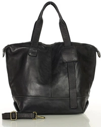 Skórzana torebka damska worek shopper bag czarny - MARCO MAZZINI v201a