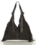 Torebka damska czarna zamszowa z frędzlami worek skórzany MARCO MAZZINI s290c