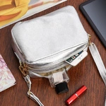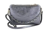 Skórzana torebka damska wieczorowa na łańcuszku srebrna P45
