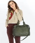 Skórzana torebka damska shopper bag z kieszeniami zielony - Marco Mazzini s131c