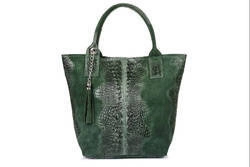 Skórzana damska shopperka zielona zamszowa croco L94