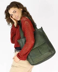 Stylowa shopperka damska torebka zielona ze skóry ekologicznej - Rovicky R-072-04