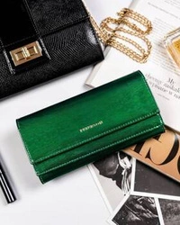 Skórzany lakierowany portfel damski z miejscem na długopis zielony - Peterson 421077-SH