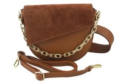 Skórzana listonoszka damska na ramię z łańcuszkiem jasnobrązowa - Barberini's 891-12