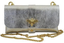 Skórzana kopertówka damska na łańcuszku srebrna metalizowana - Barberini's 958/1-16
