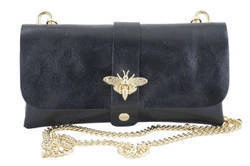 Skórzana kopertówka damska na łańcuszku czarna metalizowana - Barberini's 958/1-1