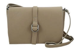 Skórzana listonoszka na ramię z klapką ciemnobeżowa - Barberini's 641-9