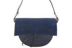 Skórzana listonoszka na ramię z zamszową klapką granatowa - Barberini's 868-4