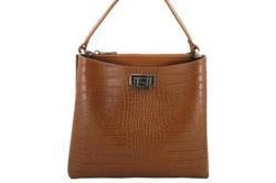 Skórzana listonoszka na ramię camel croco - Barberini's 795/1-12