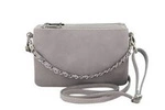 Skórzana listonoszka damska na ramię szara z łańcuszkiem - Barberini's 172-3